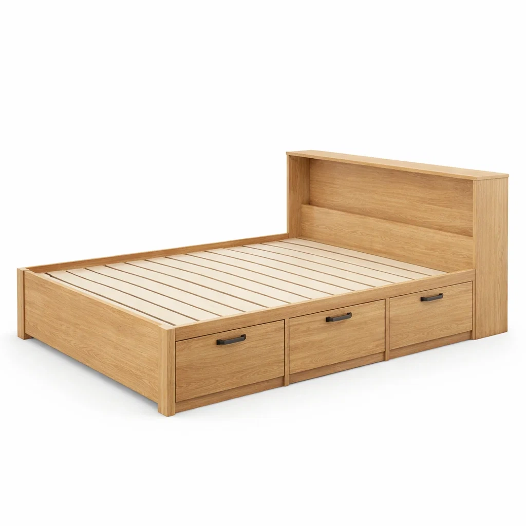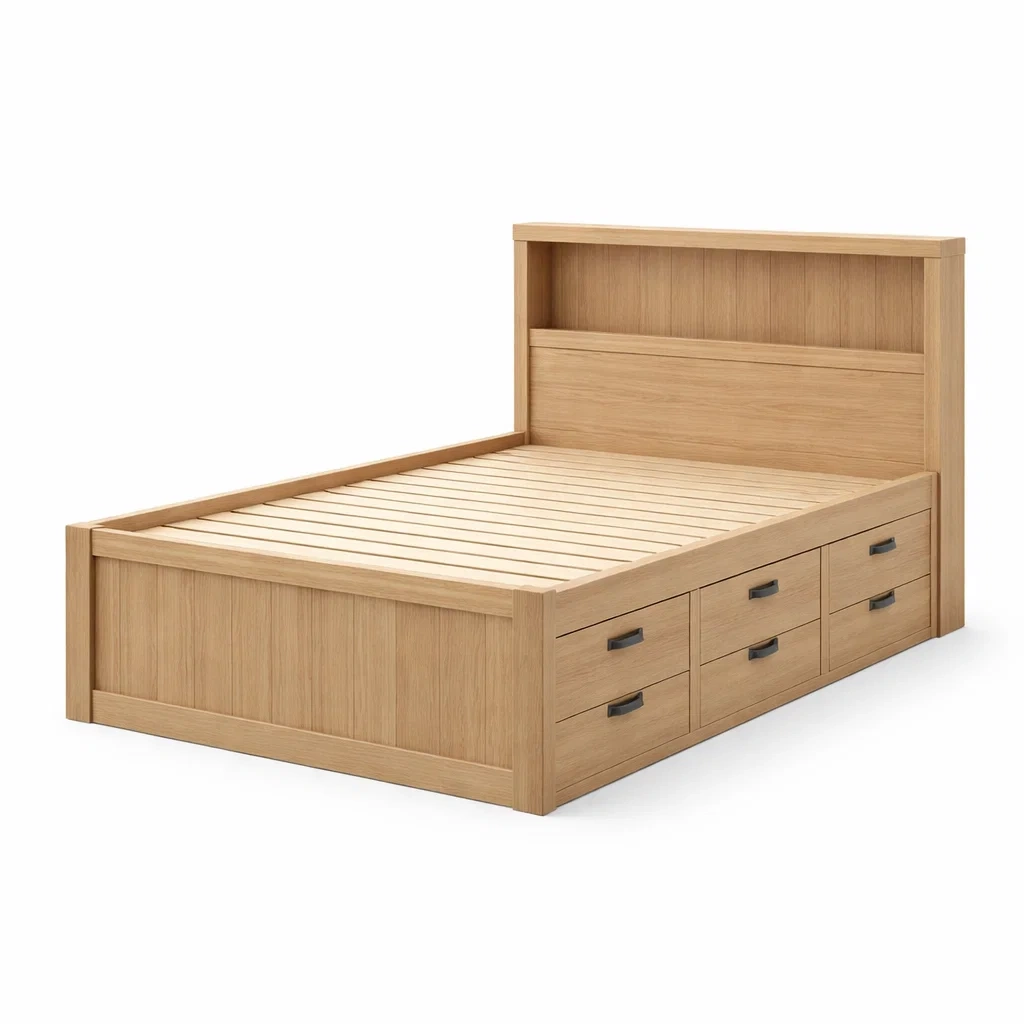 Letto contenitore singolo in legno di rovere con cassetti