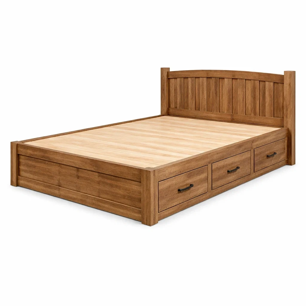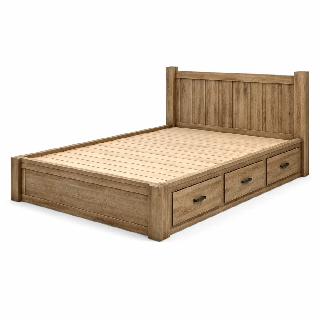 Letto contenitore matrimoniale in legno massello con cassetti